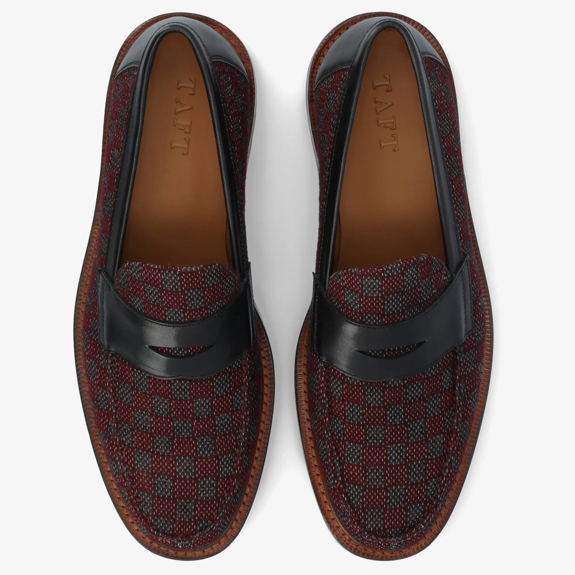 Step Into A World Of Allure With Our Fitz Loafer In Maroon Check: A Crossover Of Maroon Checkered Canvas With Black Leather Accents And Trim. Exquisitely Handcrafted With A Double Leather Sole In Our Blake Construction, This Stylish Loafer Embodies The Perfect Blend Of Ritz, Resilience, And Comfort –Beckoning You To Be Seen.