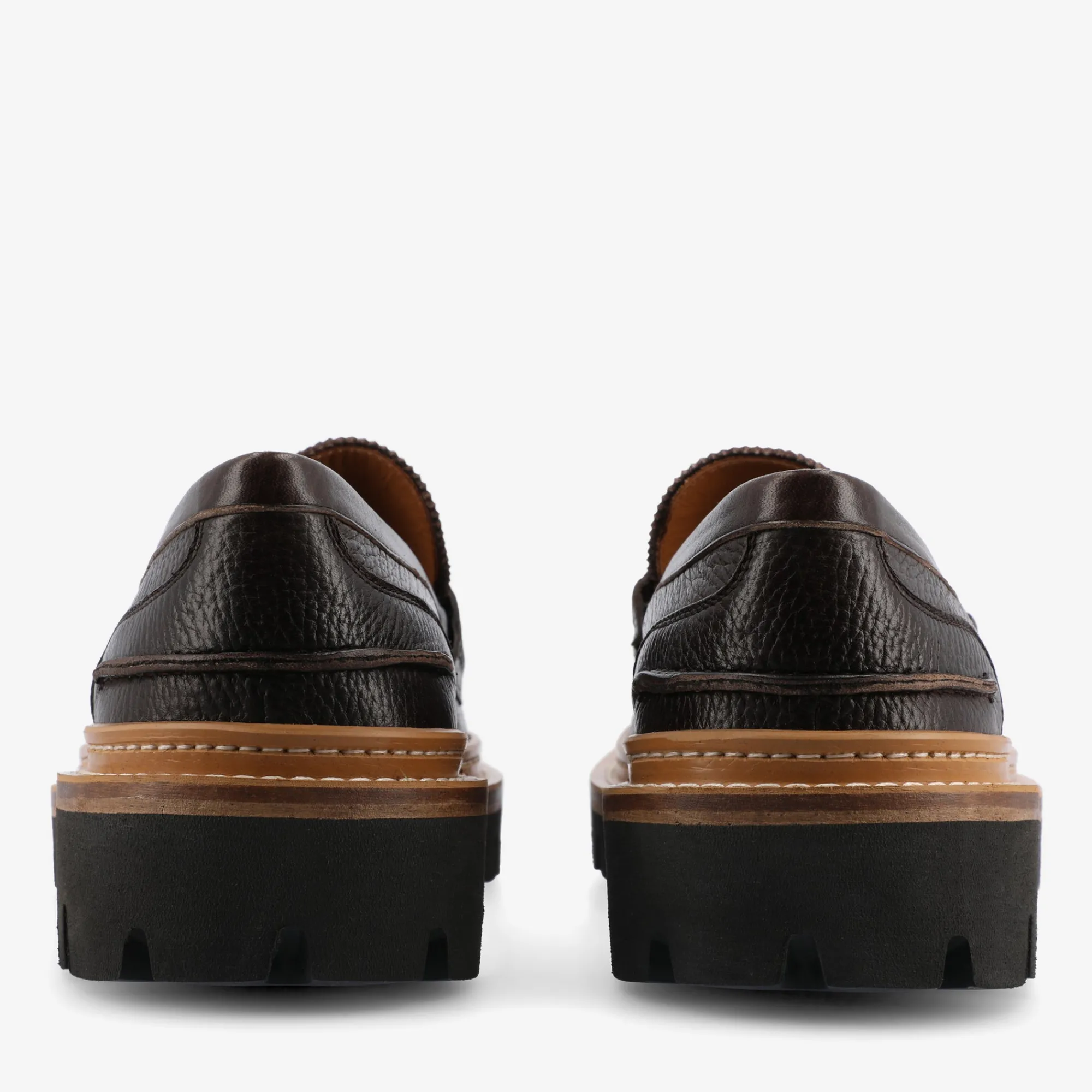 The Country Loafer In Coffee: An Embodiment Of Bold Elegance And Impeccable Craftsmanship. Drenched In A Rich Coffee Hue, This Loafer Is Handcrafted With An Ultra-Soft Deerskin Upper Combined With The Robust Rubber Commando Sole–These Chunky Loafers Stand Out In A Crowd. Complemented By A Custom Sidewall Welt, Our Shoes Promise Resilience With A Touch Of Sophistication. Featuring A Standard D Width And The Resoleable Blake Construction, This Shoe Is More Than Just Footwear.