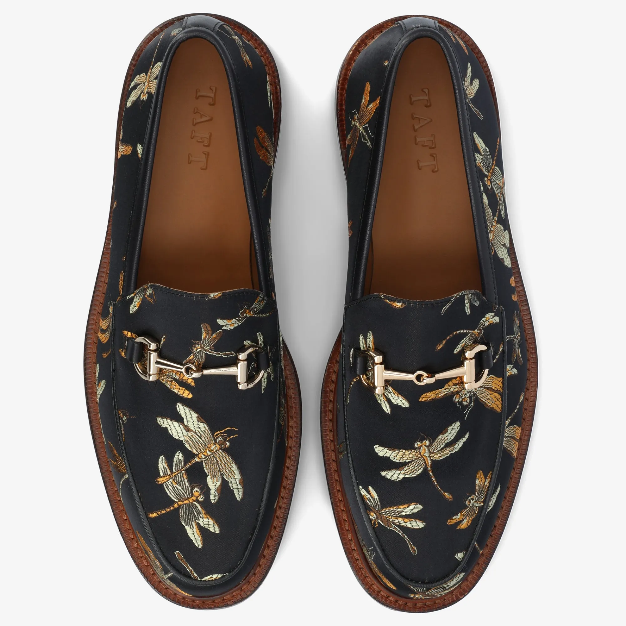 A Bevy Of Golden Dragonflies Set Against A Black Night Sky, Our Fitz Loafer In Black Dragonfly Is Sure To Add A Little Something Extra To Your Everyday Adventures. Crafted With A Stylish Horsebit Buckle In Our Durable Blake Construction And A Double Leather Sole, These Classic-Turned-Chic Loafers Add Just The Right Touch Of Boldness To Any Fashion-Forward Wardrobe.