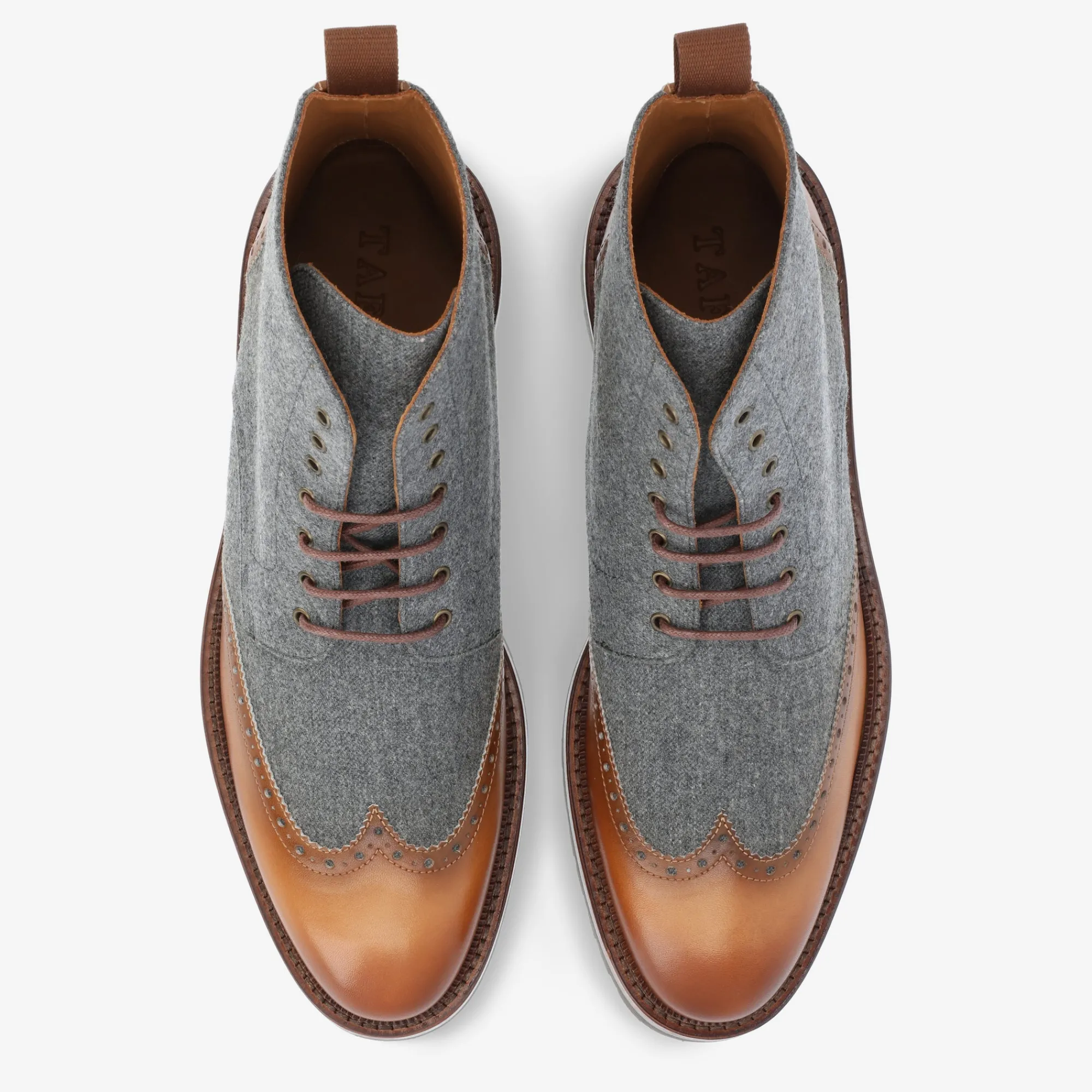 DetailsMeet The Winter Boot You Need: The Livingston In Grey/Brown. Supportive Cushioned Insoles, Classic Lace-Up Closure, Wool Uppers, And Premium Genuine Leather Are Going To Offer You Endless Winter Fits And Quality That’S Built To Last. An Almond Toe Finishes This Classic Look For A Fresh Spin. With A Beautiful Pair Of Boots Like These In Your Closet, You’Ll Always Look And Feel On Top Of Your Game.