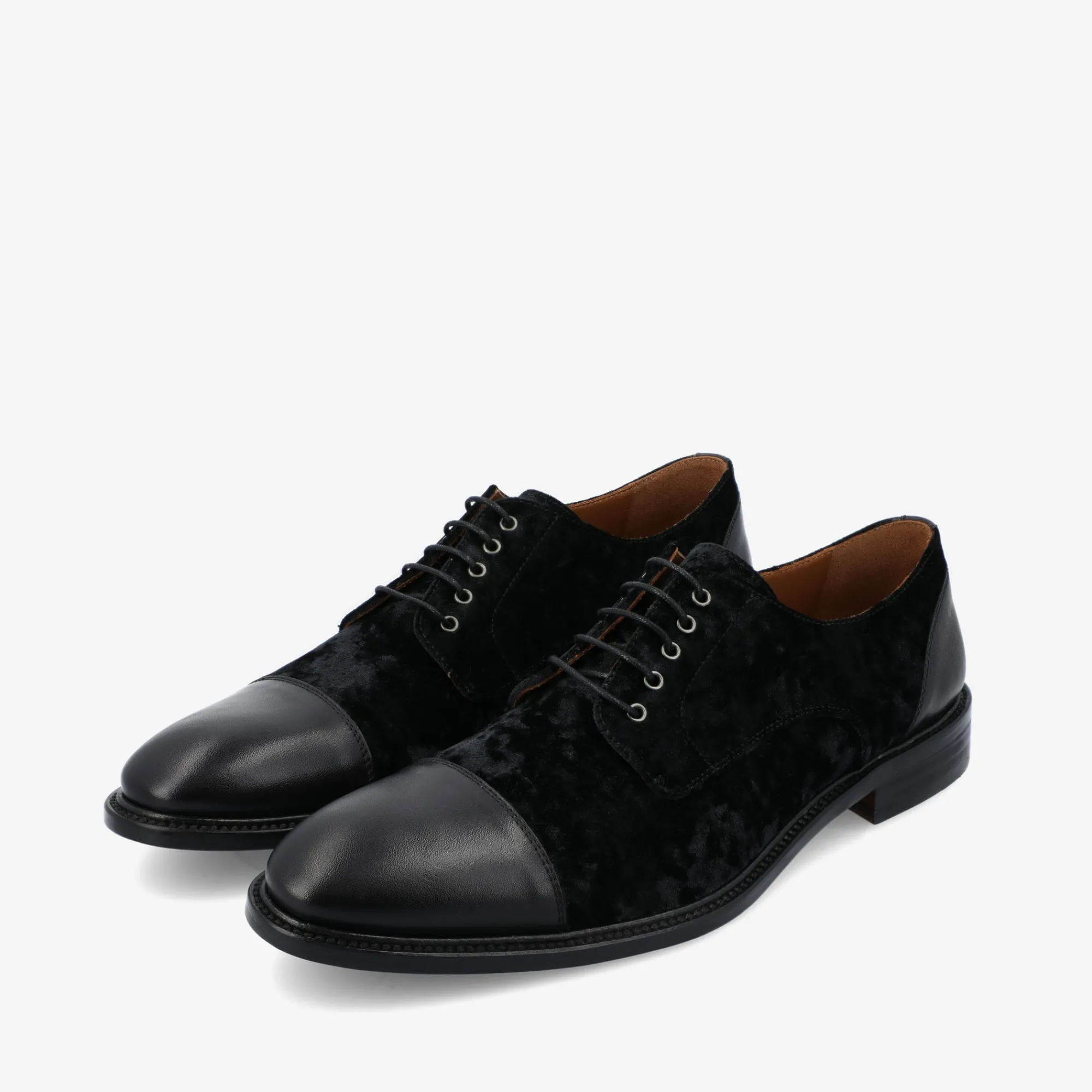 Our Jack Shoe In Black Velour Is A Fresh Take Applied To Our Signature Product, Featuring Black Velvet And Black Leather Cap Toe Accents. Not Only Are These Shoes Comfortable, But They’Re Made To Last – And Guaranteed To Get You Compliments. The Sole Of These Shoes Is Leather With A Rubber Insert Added For Grip And Durability.