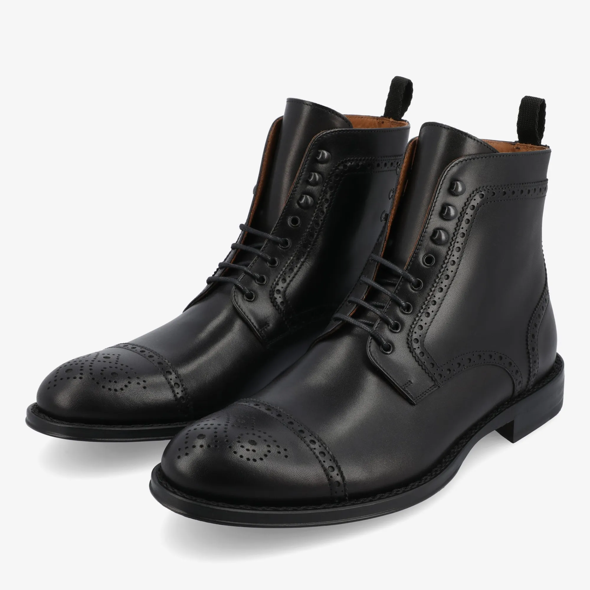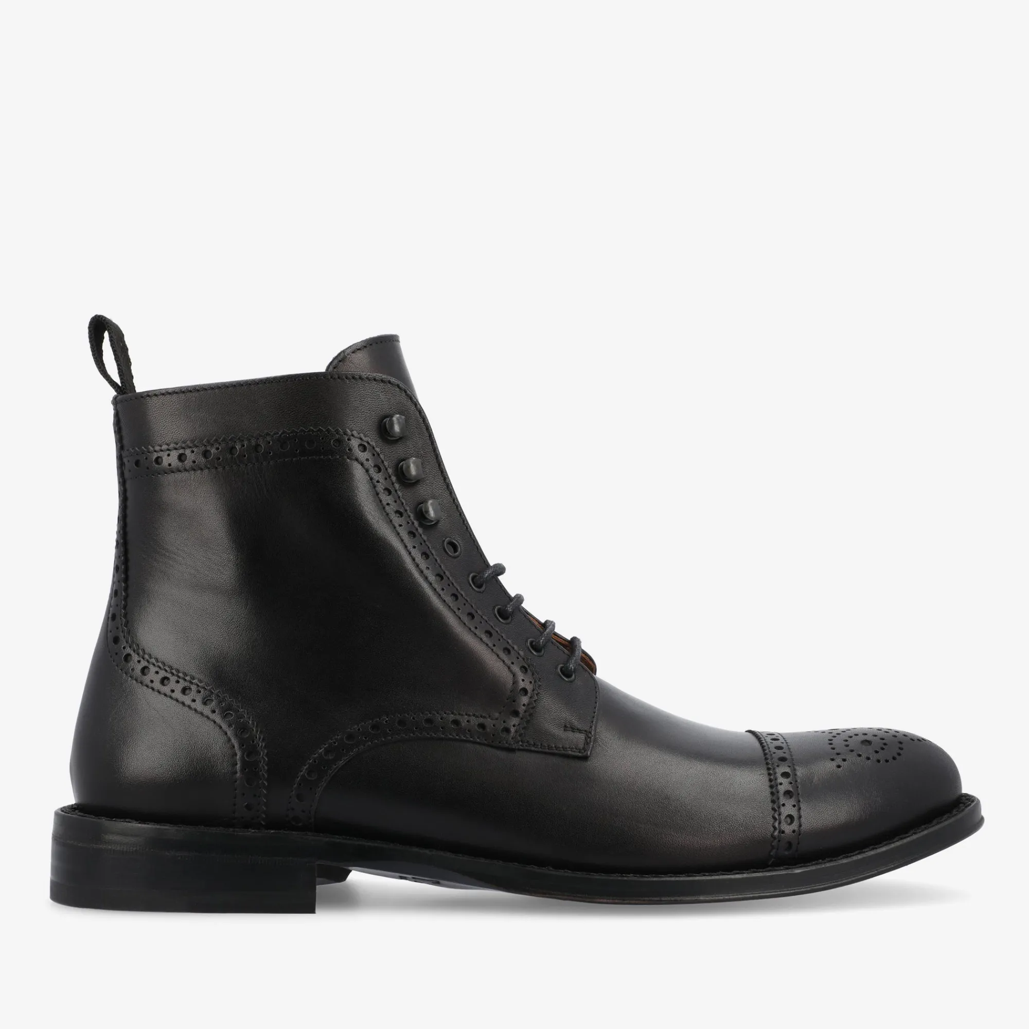 Introducing The Noah Boot In Black, A Distinguished Addition To Taft’S Esteemed Collection. Featuring A Brogued Captoe And A Refined Full Leather Sole With A Neatly Trimmed Waist, This Stylish Dress Boot Embodies Sophistication. With An Upper Crafted From Hand-Burnished Black Calfskin Leather, This Boot Exudes Elegance – And With A Leather Sole And Robust Rubber Heel Top Lift, Style Marries Durability With Grace. Constructed With Our Signature Blake Construction, The Noah Boot In Black Is A Unique Blend Of Modern Finesse And Traditional Craftsmanship.