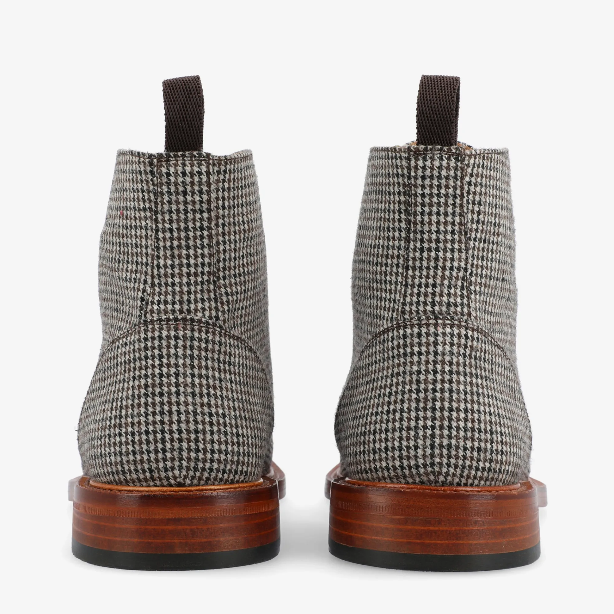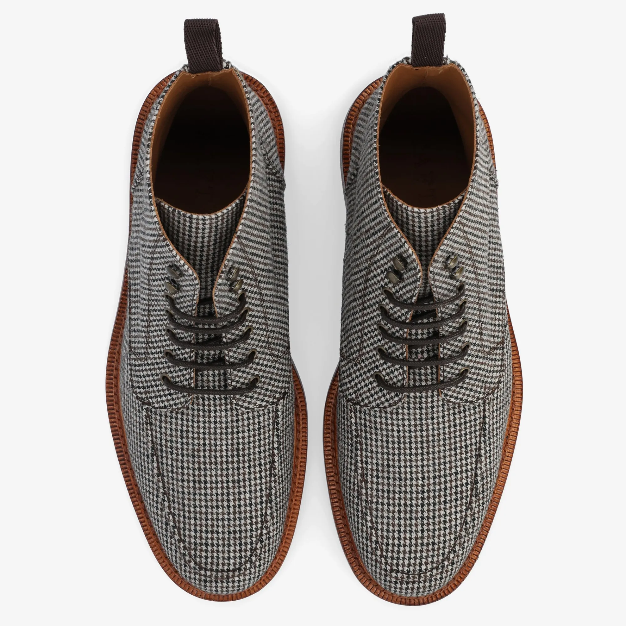 DetailsIntroducing Our First Ever Moc Toe Boot, The Smith, Featuring A Houndstooth Portuguese Wool Upper In Brown And Cream That Is Going To Give You Endless Styling Options. With A Bold Pair Of Boots Like These In Your Closet, You’Ll Always Look And Feel Like The Most Fashionable One Around.