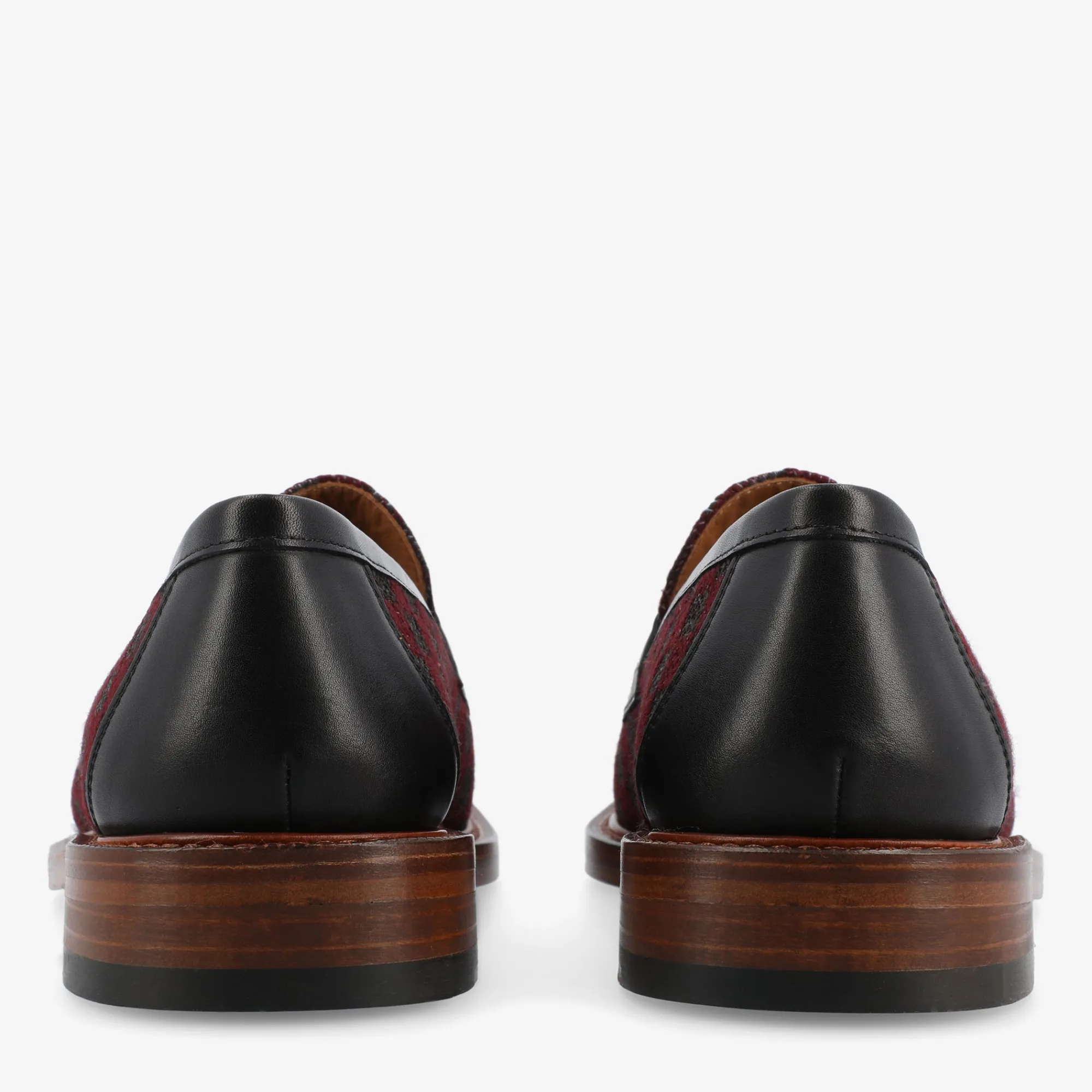 Step Into A World Of Allure With Our Fitz Loafer In Maroon Check: A Crossover Of Maroon Checkered Canvas With Black Leather Accents And Trim. Exquisitely Handcrafted With A Double Leather Sole In Our Blake Construction, This Stylish Loafer Embodies The Perfect Blend Of Ritz, Resilience, And Comfort –Beckoning You To Be Seen.