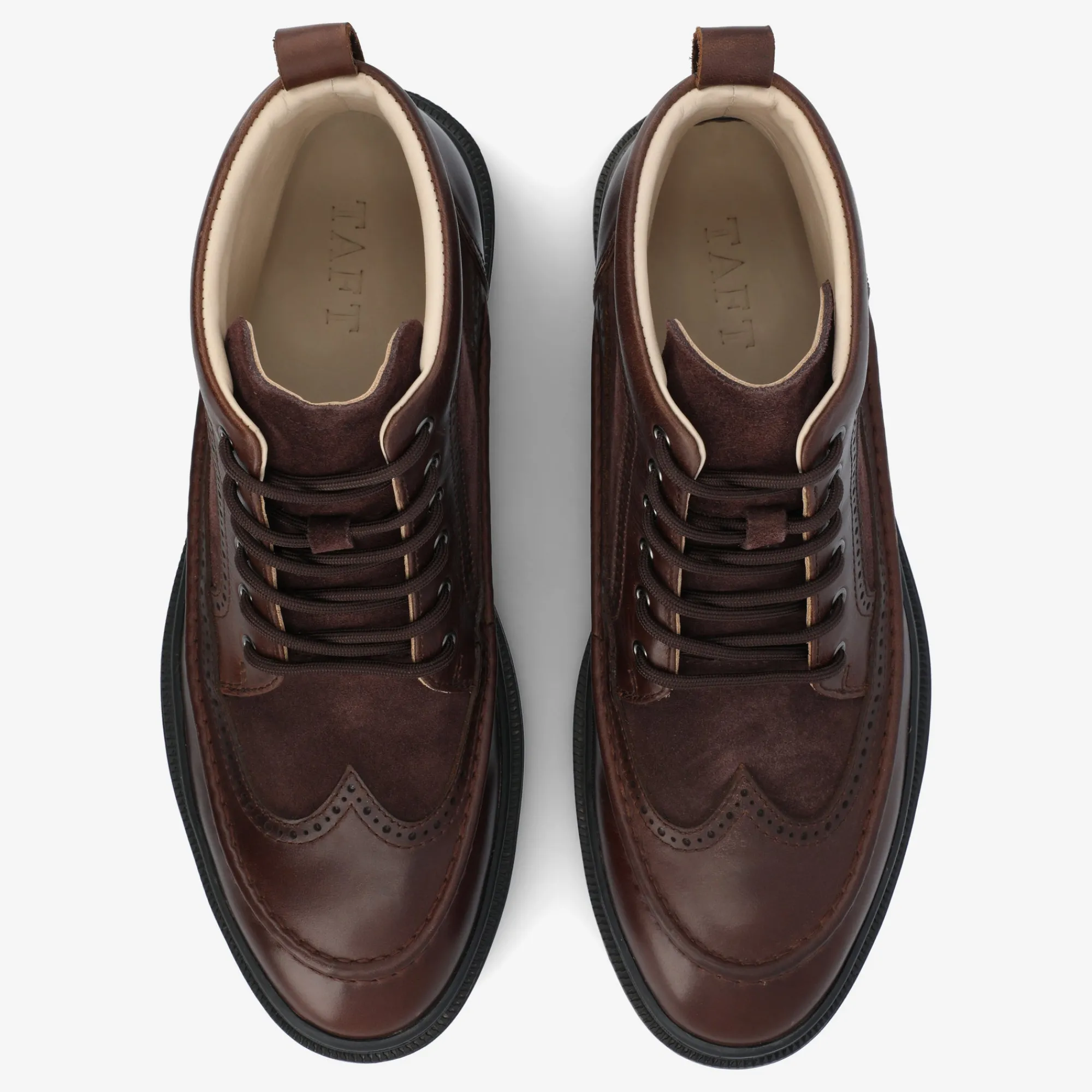 The Model 008 By Taft 365 Is A Lace-Up Boot That Blends Classic Style With A Modern Touch. This Boot Showcases A Wingtip Design And Stylish Two-Tone Accent With The Combination Of Smooth Genuine Leather With The Plushness Of Soft Suede. The Result Is A Versatile And Sophisticated Boot Suitable For A Wide Range Of Occasions.
