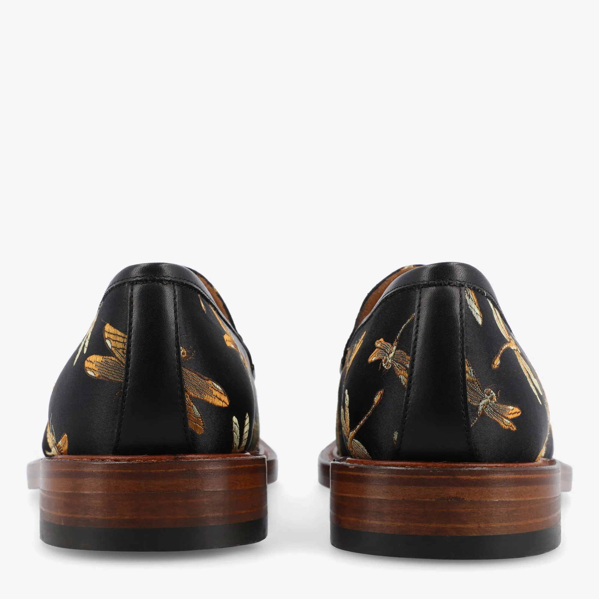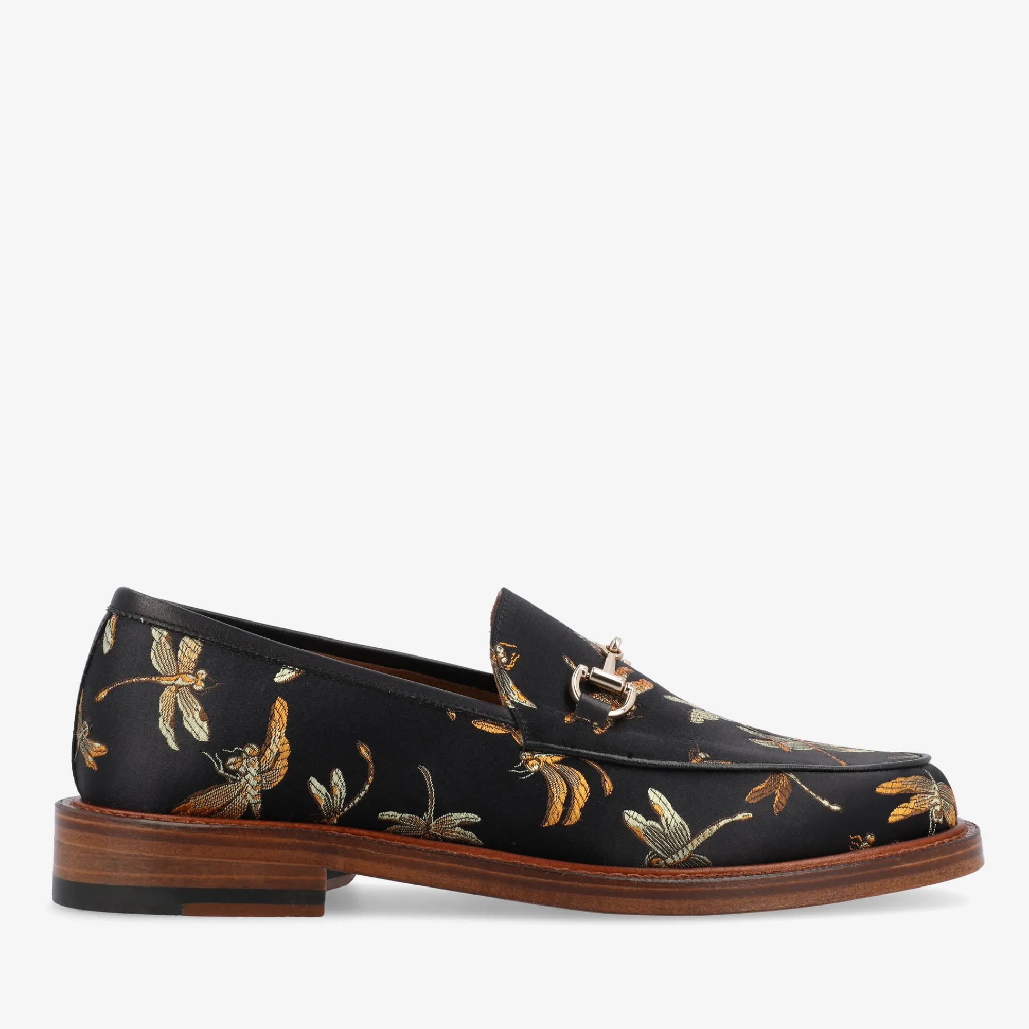 A Bevy Of Golden Dragonflies Set Against A Black Night Sky, Our Fitz Loafer In Black Dragonfly Is Sure To Add A Little Something Extra To Your Everyday Adventures. Crafted With A Stylish Horsebit Buckle In Our Durable Blake Construction And A Double Leather Sole, These Classic-Turned-Chic Loafers Add Just The Right Touch Of Boldness To Any Fashion-Forward Wardrobe.