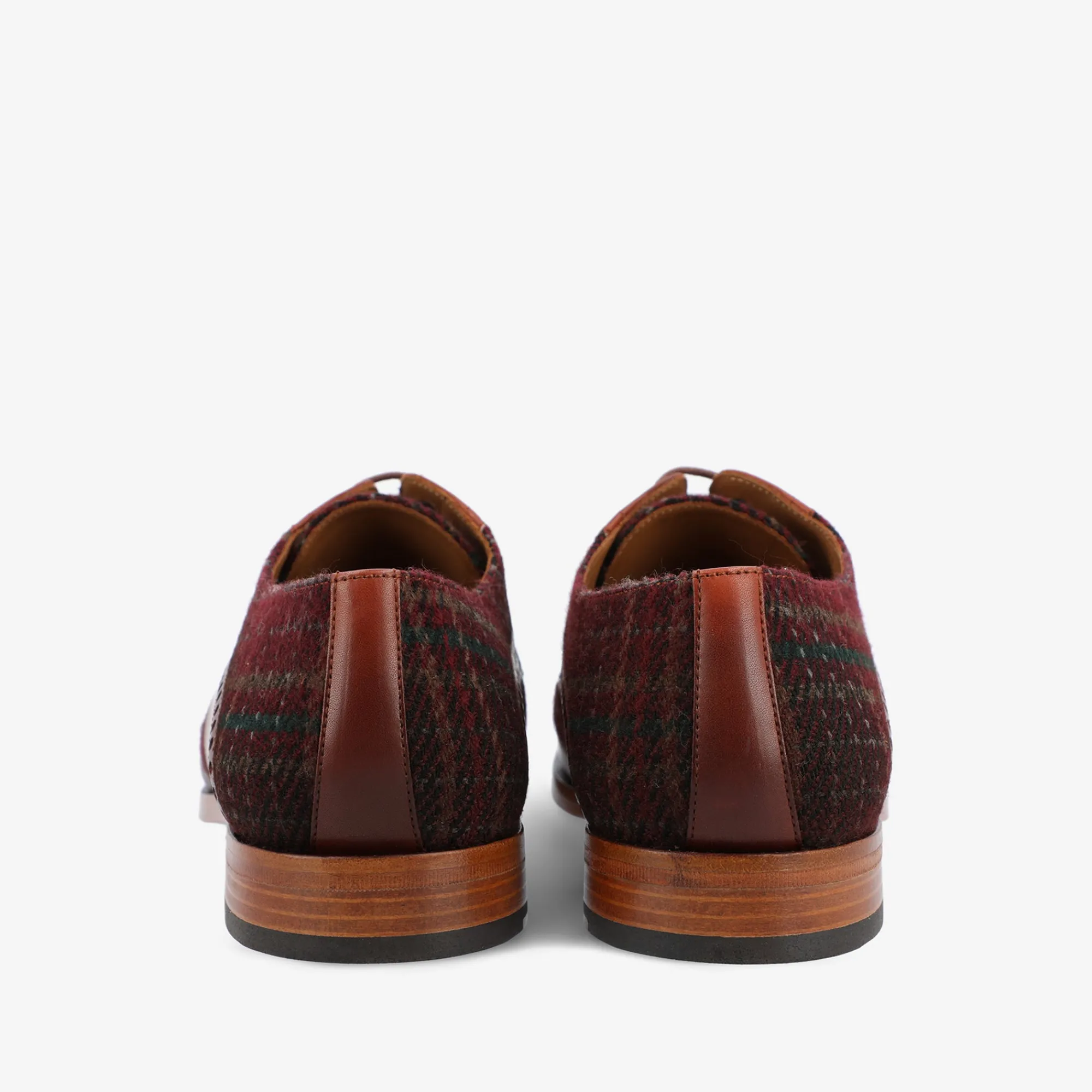 DetailsUsher In Cooler Temps With Our Brand New Silhouette. The Wallace Shoe In Red Plaid Is The Perfect Way To Step Up Your Fall Fit. Our Newest Oxford Style Shoe Features A Show-Stopping Red Tartan Wool And Full-Grain Calfskin Complete With Leather Brogue Detailing.