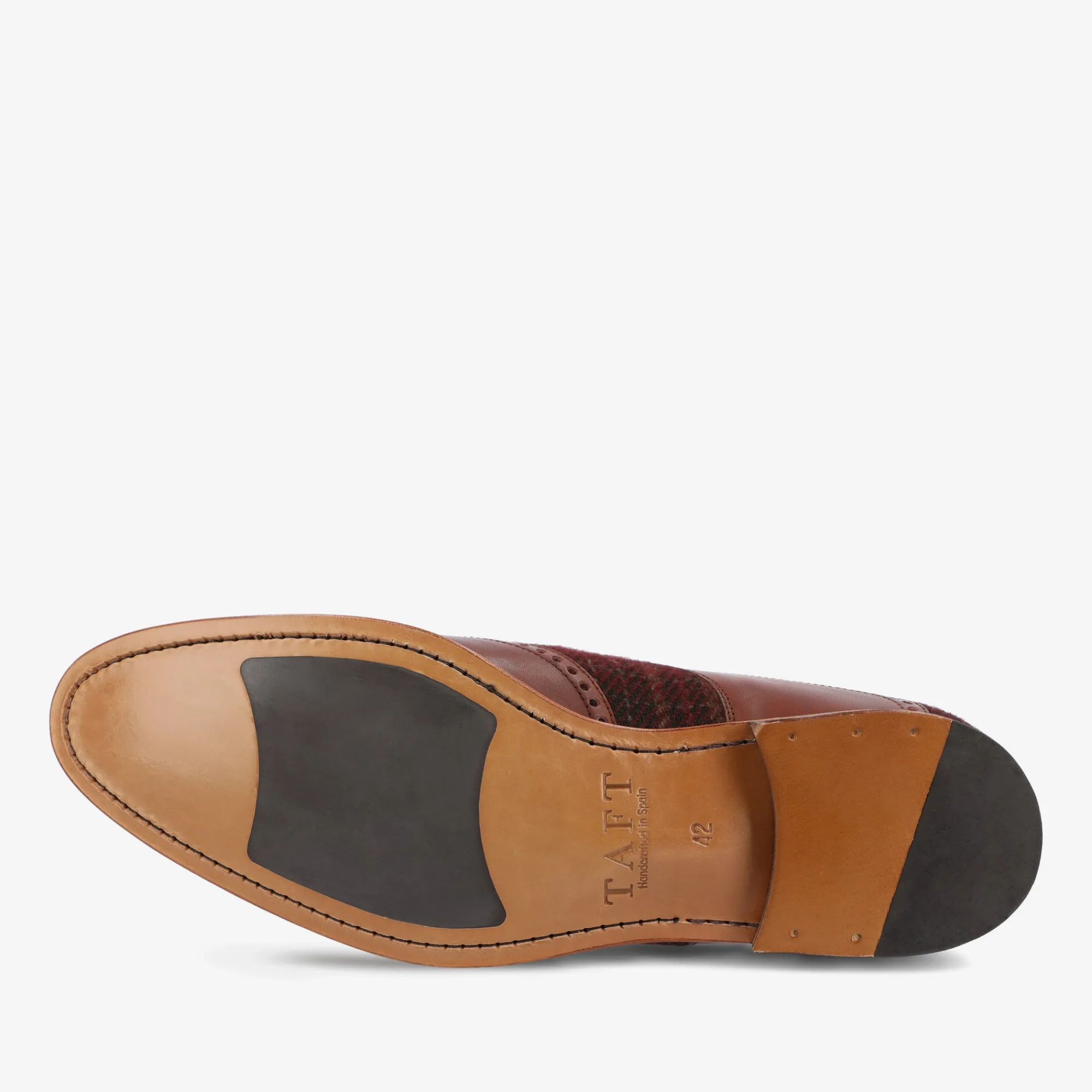 - Upper: Chocolate Full-Grain Calfskin & Red Tartan Plaid Wool